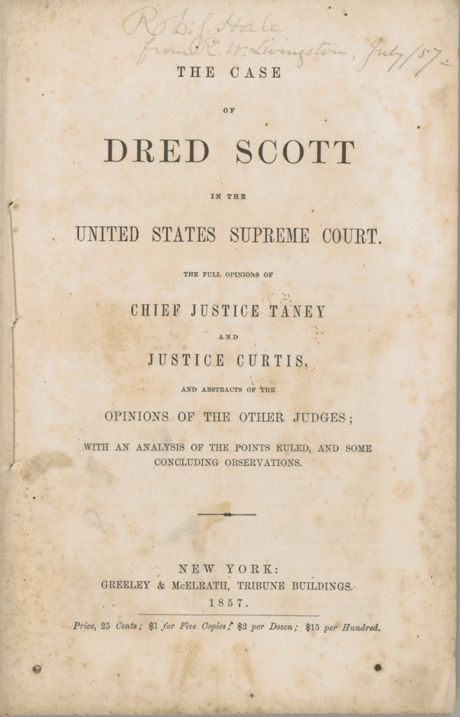 The Case of Dred Scott in the United States Supreme Court